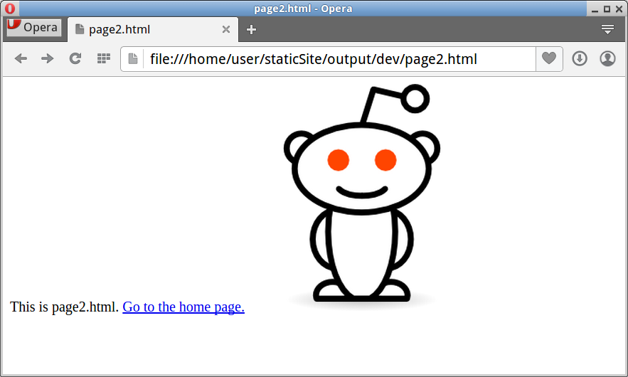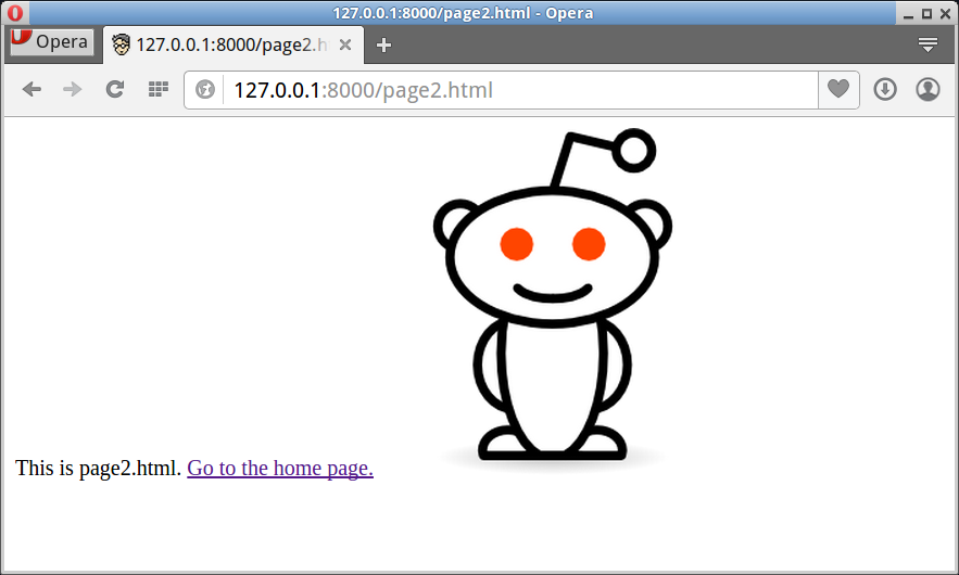 It is possible to view webpages directly from the filesystem, using file:// URLs. However, this is far from ideal, since links will usually break and resources (like images, CSS, JS, etc.) usually won't be found. The tiny website we created in this tutorial exhibits this problem: On page2.html, we link back to the home page using a URL of "/". When the page is viewed from the filesystem, this link will take us to the wrong place: